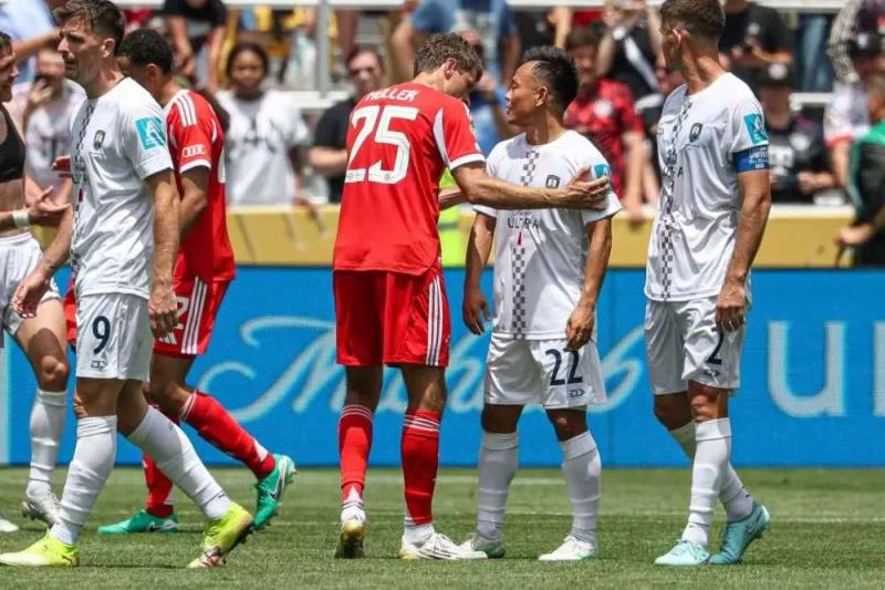 6月15日,两队交手。第66分钟,身披22号、球衣上印着“ZHOU”的球员替补上场,周通就这样,成为参加新版世俱杯的第一位,也是唯一一位中国球员。“能与顶尖职业球员过招,我觉得很荣耀,也是一种特别的体验。”